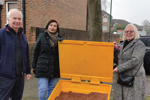 Local Councillors got a new grit bin installed to help residents tackle icy pavements.